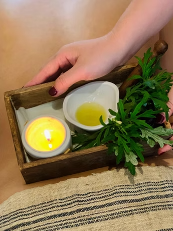 Uses: Herbal massage oil, mugwort massage oil, various fresh herbs (especially mugwort, which helps dispel wind, dispel cold, improve meridian circulation, and promote blood flow), mugwort sticks.